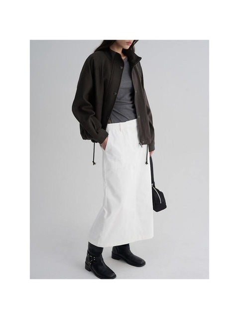 (356127WM2H) [에잇세컨즈] 벨티드 H라인 롱스커트 카키