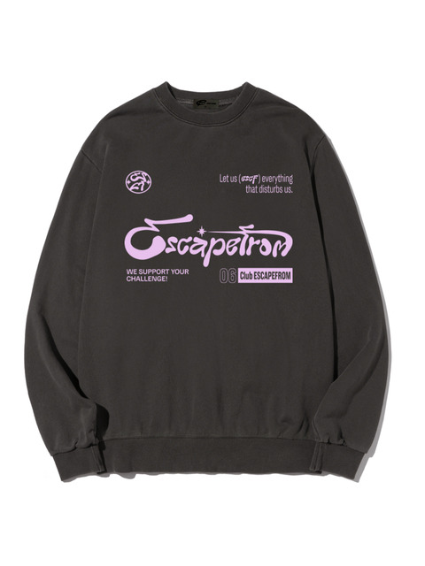 [이스케이프프롬] 이스케이프프롬 챌린지 심볼 프린트 피그먼트 맨투맨 차콜