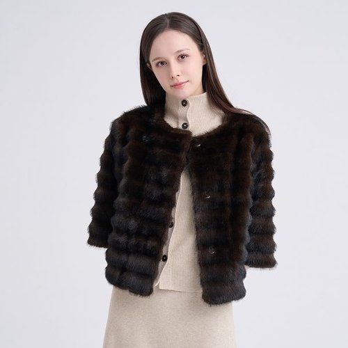 [라온](LAON) 호리젠탈 에코밍크 퍼 숏자켓