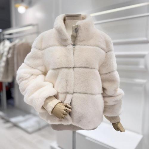 [밸리걸]하이넥 에코퍼 밍크 루즈핏 숏 자켓 614090