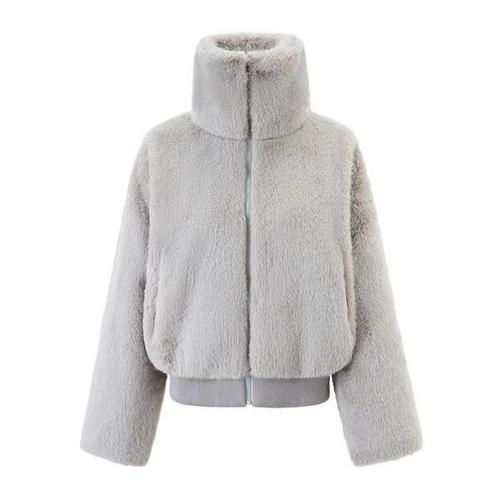 러우 여성 밍크 에코퍼 하이넥 오버핏 카라집업 퍼 자켓
