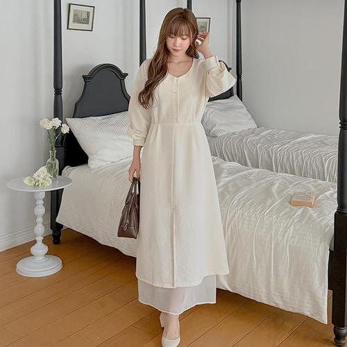 [이블렛 by 제이스타일]이블렛 퓨티렌 레이어드 트임 롱 원피스 제이스타일