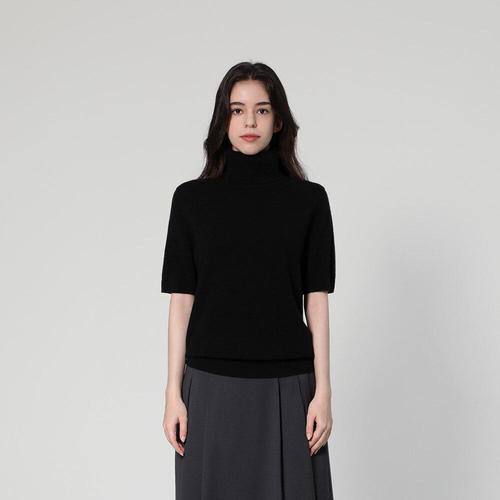 [유닛]캐시미어 터틀넥 하프슬리브 니트 풀오버 (UFJKTN340C-BLACK)
