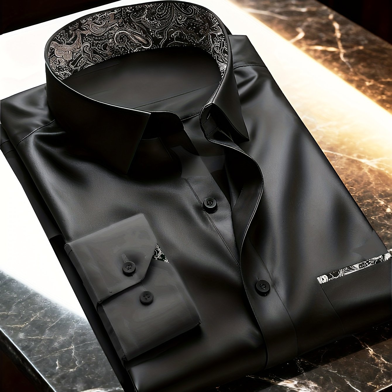 TEMU 남성 슬림핏 긴팔 드레스 셔츠 - 주름 방지, 다림질 불필요, 단색 비즈니스 캐주얼 & 포멀 셔츠 (사무실, 회의, 전문직 복장용), 세련된 디자인, 튼튼한 원단, 기업복, 모던 스타일, 고품질 소재