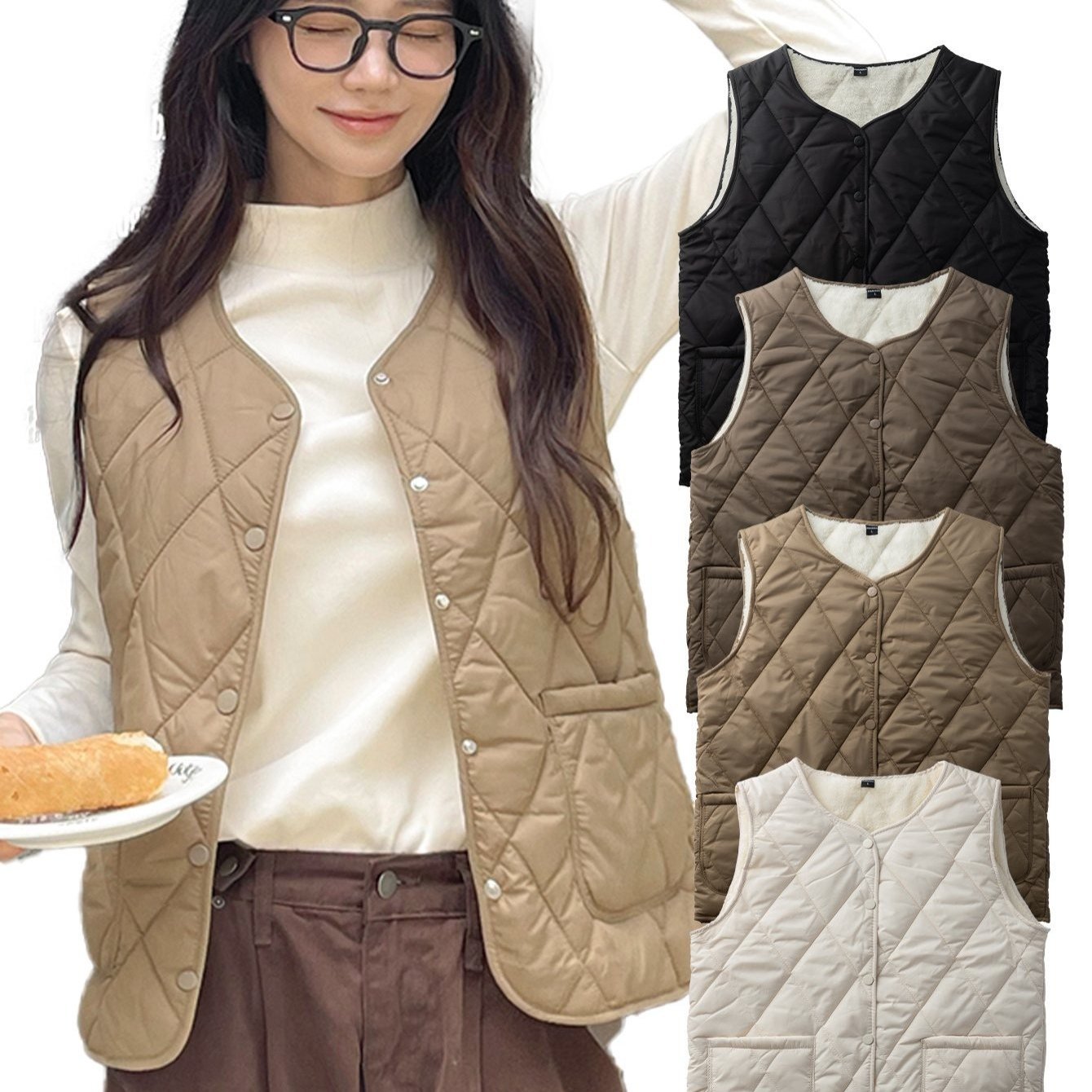 TEMU 시노코 여성 보아 퀄팅 패딩조끼 V넥 경량 패딩조끼