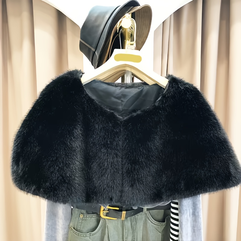 TEMU 여성용 우아한 소프트 인조 모피 숄 케이프 | 따뜻한 방풍 단색 고급 랩, 가을 겨울용, 다용도 패션 액세서리 (결혼식 및 공식 행사용), 이브닝 케이프 슬리브 숄, 웨딩 아우터