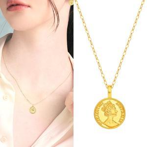 14K 18k 엘리자베스 코인 커팅 펜던트 여자 금 목걸이 선물 15미리