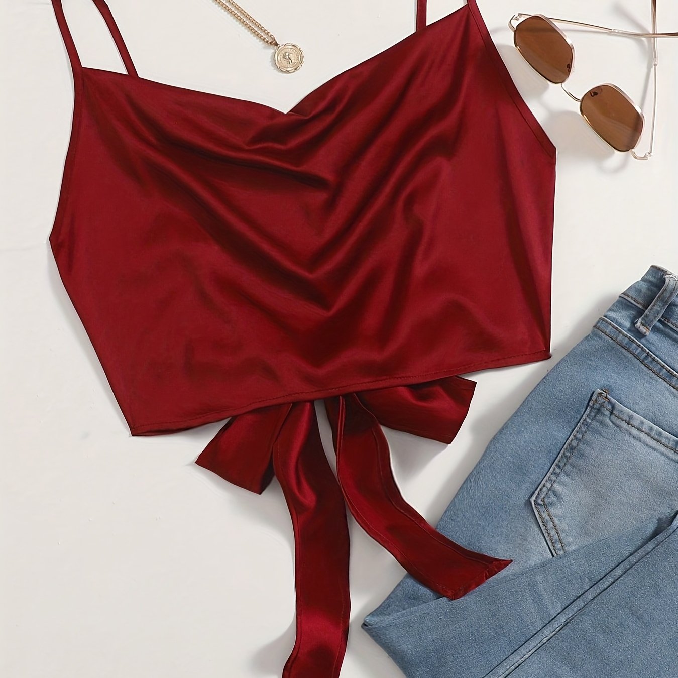 TEMU 여성용 조절 가능한 얇은 스트랩이 있는 새틴 슬립온 캐미 탑 - 뒷면 타이 클로저, 부드러운 반짝이는 원단, 캐주얼 여름 의상에 완벽한 여성용 탱크탑