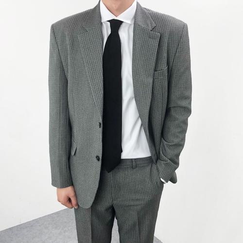 [엠클로]남자 클래식 빅사이즈 톰글렌 체크 스판 투버튼 싱글자켓 슬랙스팬츠 셋업수트 2컬러 2XL