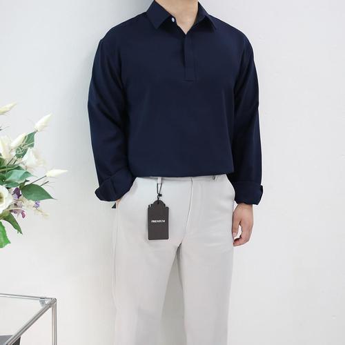 [엠클로]남자 오버핏 히든버튼 반오픈 카라 긴팔 셔츠