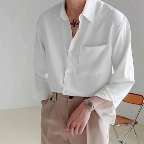 남성용 여름 간절기 포켓 베이직 긴팔 셔츠 WFLN0QI