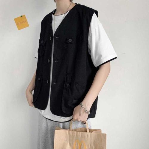 [에이치플러스몰]간절기 캐주얼 봄여름 조끼 패션 코튼 남성 오버핏