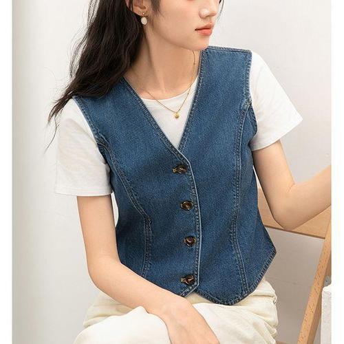 [패션시그널]썸머 브이넥 데님 조끼베스트 C1314A
