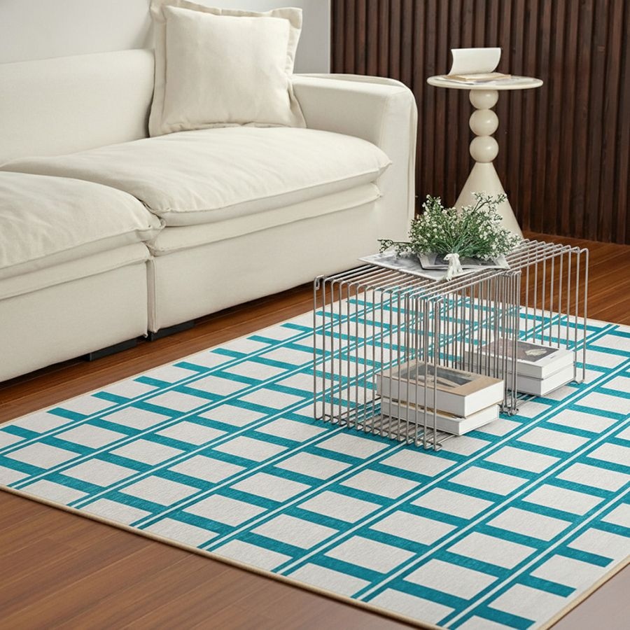 그리드 하이브 시티블루 먼지없는 거실러그 사계절 여름 체크 대형 인테리어 카페트 3size