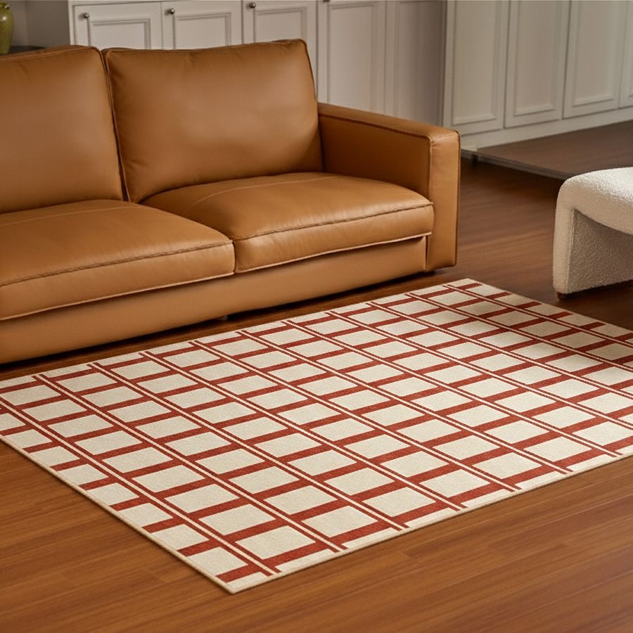 그리드 하이브 선셋레드 먼지없는 거실러그 사계절 여름 체크 인테리어 대형 카페트 3size