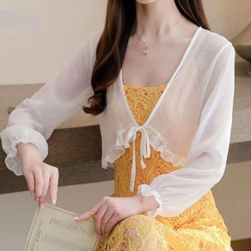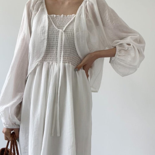 [셀러허브_여성트랜드패션]Rly 원피스 미니 긴팔 여름 볼레로 쉬폰 레이스