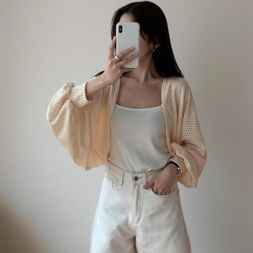 여름 베이직 여성 펀칭 니트가디건 올데이 볼레로 가 (WFHWSUZ)