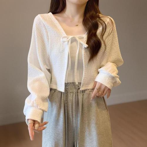 [신상오픈런]여성 여름 시스루 리본 스트랩 가디건 볼레로