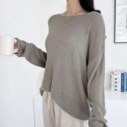 [에이치플러스몰]여자 베이직 여름 루즈핏 시스루 올데이 긴팔 니트