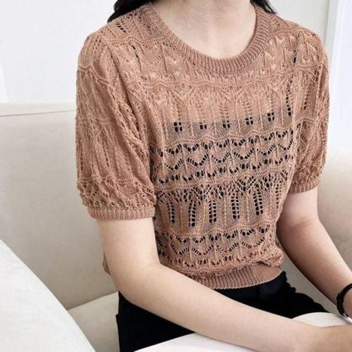 [에이치플러스몰]여자 인기 여성 반팔 니트 감성 여름 시스루 포인트
