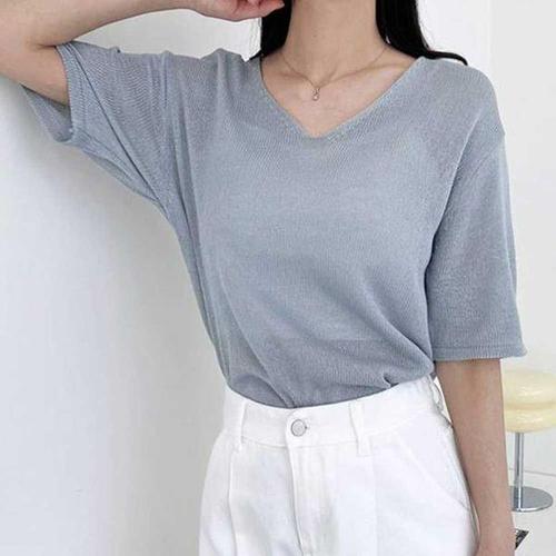 [에이치플러스몰]여자 여름 캐주얼 데일리 브이넥 필수템 그물 시스루