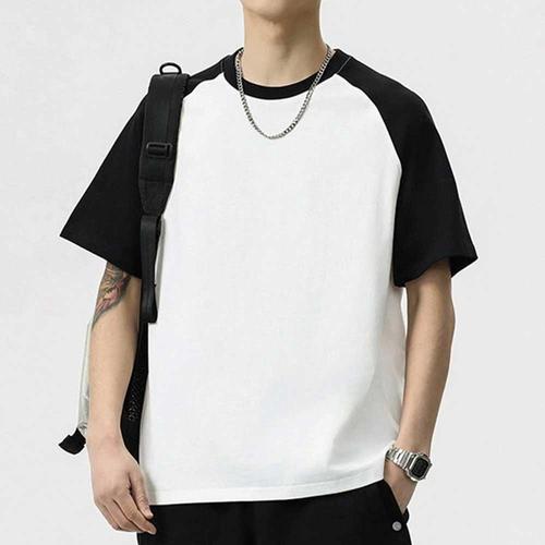 남자 대학생 캠퍼스 룩 여름 배색 래글런 반팔 티셔츠 WFJIVTO