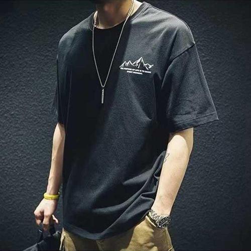 캠핑 여행 룩 남자 여름 마운틴 프린트 반팔 티셔츠 WFJIVUD