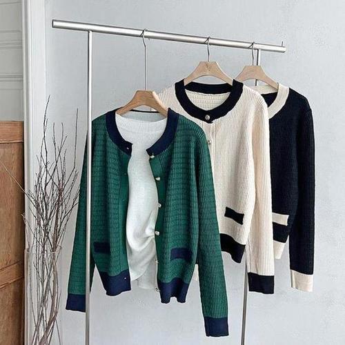 샵앤) 국산 여성 여름 배색 골지 니트 가디건 WDM-WCD-2LCBB1057