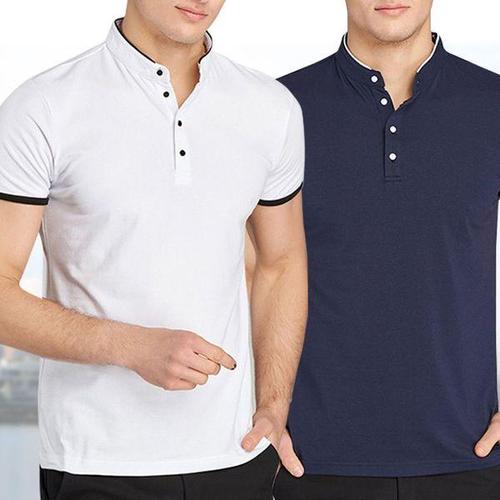 남성 여름 골프웨어 골프 상의 카라 배색 반팔 티셔츠 190523M37