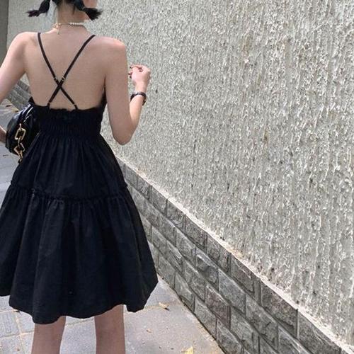 [에이치플러스몰]여성 셔링 끈나시 백리스 포인트 여름 끈나시원피스