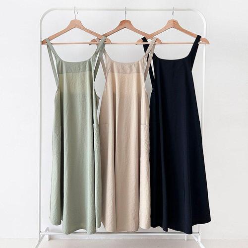 옷자락 / 여자 여름 린넨원피스 포켓 끈나시 슬릿 미디 원피스