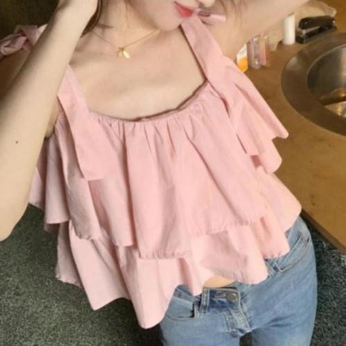 |CCTA2EC|여성 여름 시즌 레이어드 프릴 민소매 탑