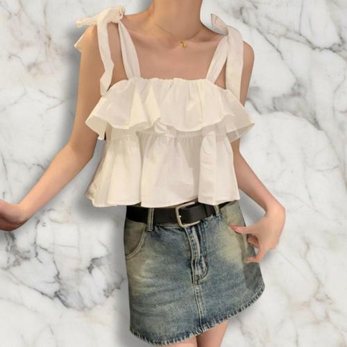 뷔스티에 여성 프릴 민소매 나시 레이스 여름 슬림핏 끈나시 캐미솔 티셔츠