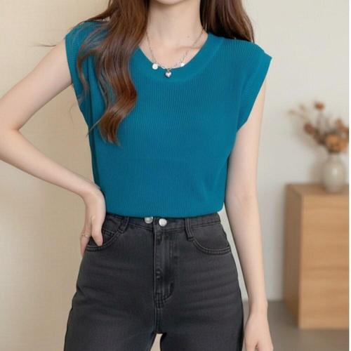 [옷자락] 여자 여름 시원한 라운드넥 골지 민소매 상의
