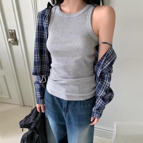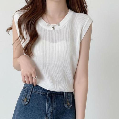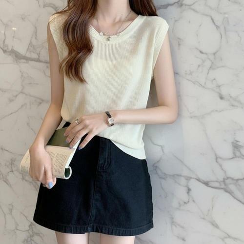 데일리 여성 골지 나시 베이직 여성 민소매 티셔츠 라운드 여름