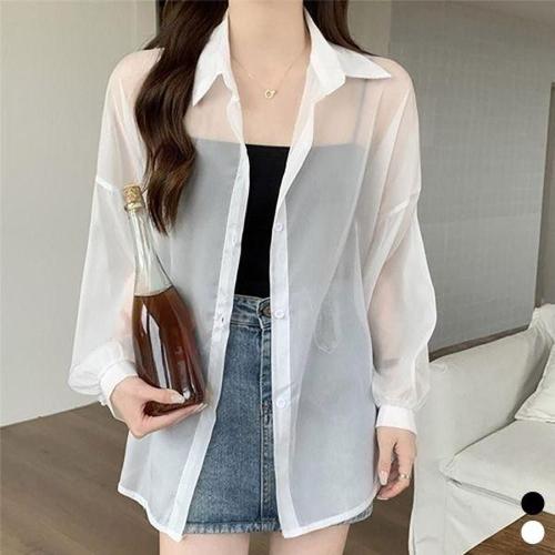 [엄지척]오버핏 시스루 셔츠 블라우스 여름남방 뒷트임 포인트_19651132_667501