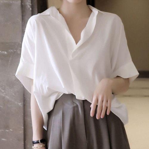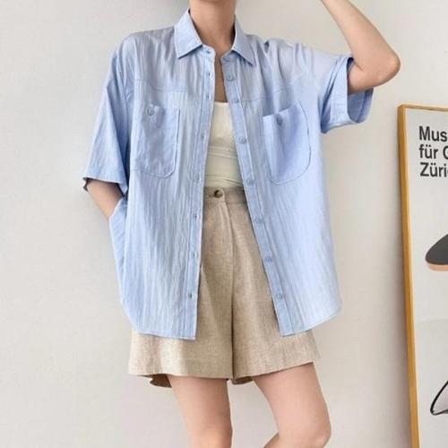 [샵앤][샵앤] 여성 루즈핏 카라넥 5부 넉넉 여름 블라우스 WON-WBL-WFIQYBO