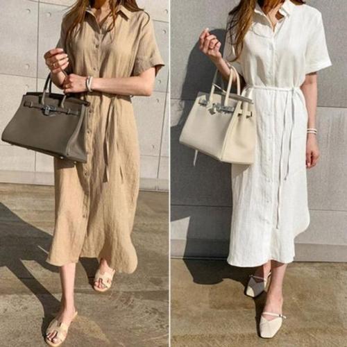 [오너클랜]인기상품 차분한 여름 원피스 롱셔츠 체형커버 린넨 시원한반팔 [WD628F3_250919]