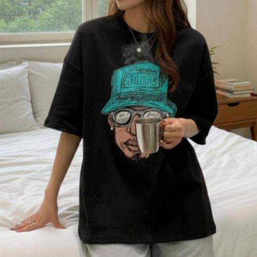 공항패션 여름 캐주얼 프린팅 반팔 티셔츠 오버핏 루즈핏 박스티