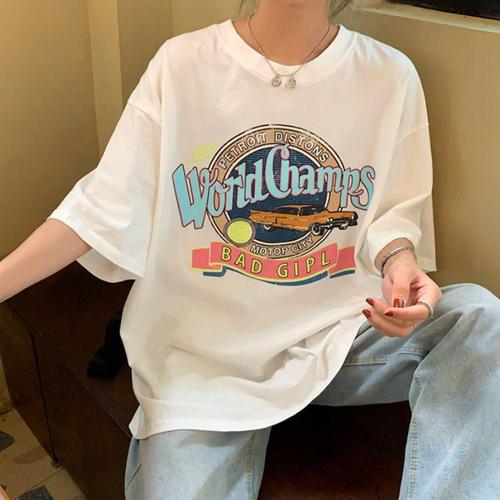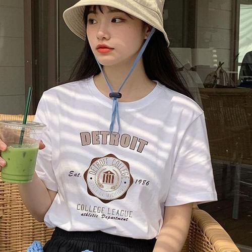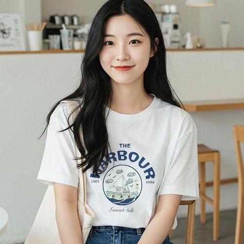 [셀러허브_여성트랜드패션]ONM 여성티셔츠 여름 면 반팔 티셔츠 루즈핏 프린팅