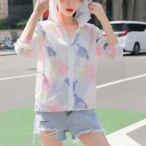 여성 여름 프린팅 후드 집업 비치 웨어 긴팔 WD9CF8C