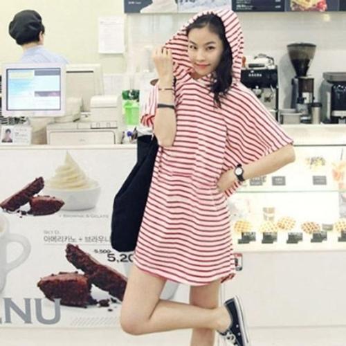 [엄지척]여름 시원한 편한 여성 스트라이프 후드 미니 원피스_19910202_667501