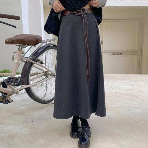 [다잇템][다잇템] 여성 에이라인 세트 후레아 가죽벨트 롱 스커트_23868156_588872
