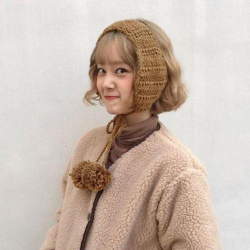 여성 귀도리 니트 털 모자 방울털 귀마개 겨울 WFMB0VT