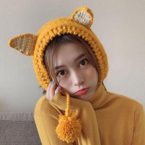 동물 귀도리 겨울 모자 니트 여성 귀여운 방울 WFMB0VW