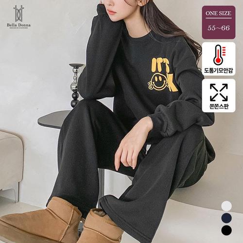 [이삐다]벨라도나 여성 겨울 스마일 기모 맨투맨 긴팔티셔츠 긴바지세트 셋업 츄리닝 BLN25_SET50