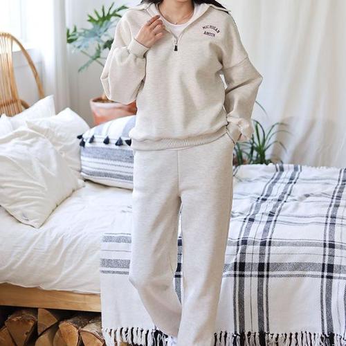 싱싱덴덩 겨울 여성 트레이닝복세트 루즈핏 빅사이즈 레저 고급 기질 기모 트레이닝 바지 투피스