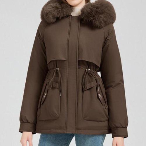 겨울 따뜻한 모피 칼라 후드 여성 파카 패션 편안한 지퍼 포켓 디자인 롱 자켓 우아한 슬림 두꺼운 여성 코트
