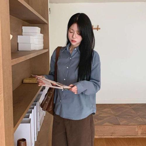 여성 겨울 루즈핏 롱 셔츠 기모 커리어 정장 대학생 면접 프렌치 쇄골 상의 추동 가슴 단추 힛템