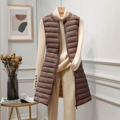 [셀러허브_여성트랜드패션]Rly 2컬러 차이나넥 베이직 롱 경량조끼 겨울패딩조끼